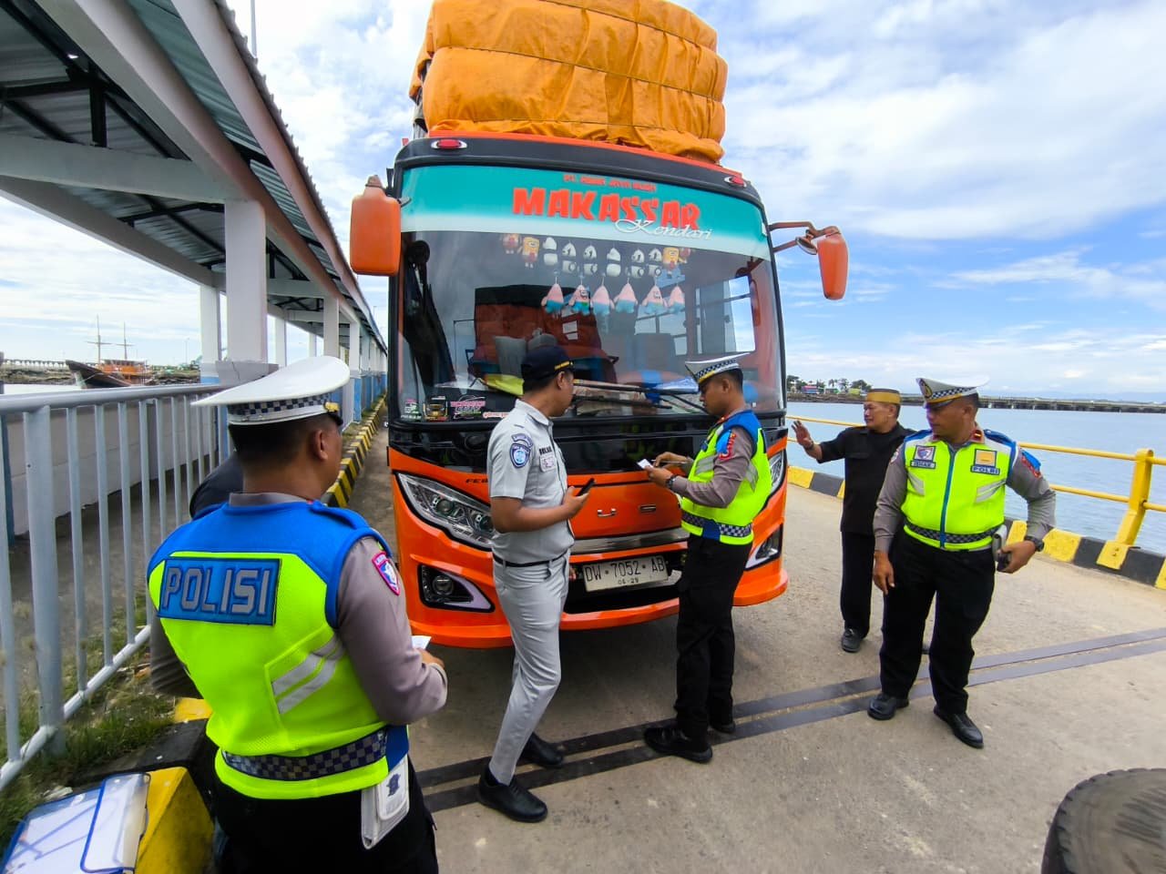 Kegiatan ramp check ini difokuskan pada pemeriksaan kendaraan angkutan penumpang yang beroperasi di kawasan pelabuhan, khususnya yang melayani mobilitas masyarakat melalui jalur penyeberangan. Pemeriksaan meliputi kelengkapan administrasi kendaraan, kondisi teknis seperti sistem pengereman, lampu, ban, serta ketersediaan perlengkapan keselamatan, guna memastikan kendaraan dalam kondisi laik jalan.