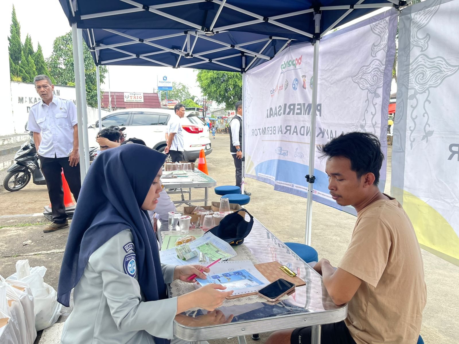 Bogor — Dalam upaya meningkatkan kesadaran masyarakat terhadap pentingnya kewajiban pembayaran pajak kendaraan bermotor, Eindita Septiara, Staf Samsat Outlet Boxies bersama mitra P3DW Samsat Kota Bogor terus menggencarkan kegiatan sosialisasi terkait peran penting taat pajak serta pemanfaatan layanan digital E-Samsat yaitu melalui Sapawarga (Sambara) dan Samsat Digital Nasional (Signal)