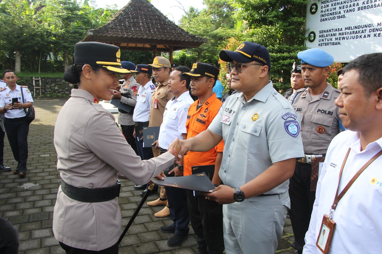 Piagam penghargaan diserahkan langsung oleh Kapolres Jembrana, AKBP Kadek Citra Dewi Suparwati, S.H., S.I.K., M.I.K. kepada para stakeholder yang telah berkontribusi aktif dalam menyukseskan pelaksanaan Operasi Ketupat Agung 2026.